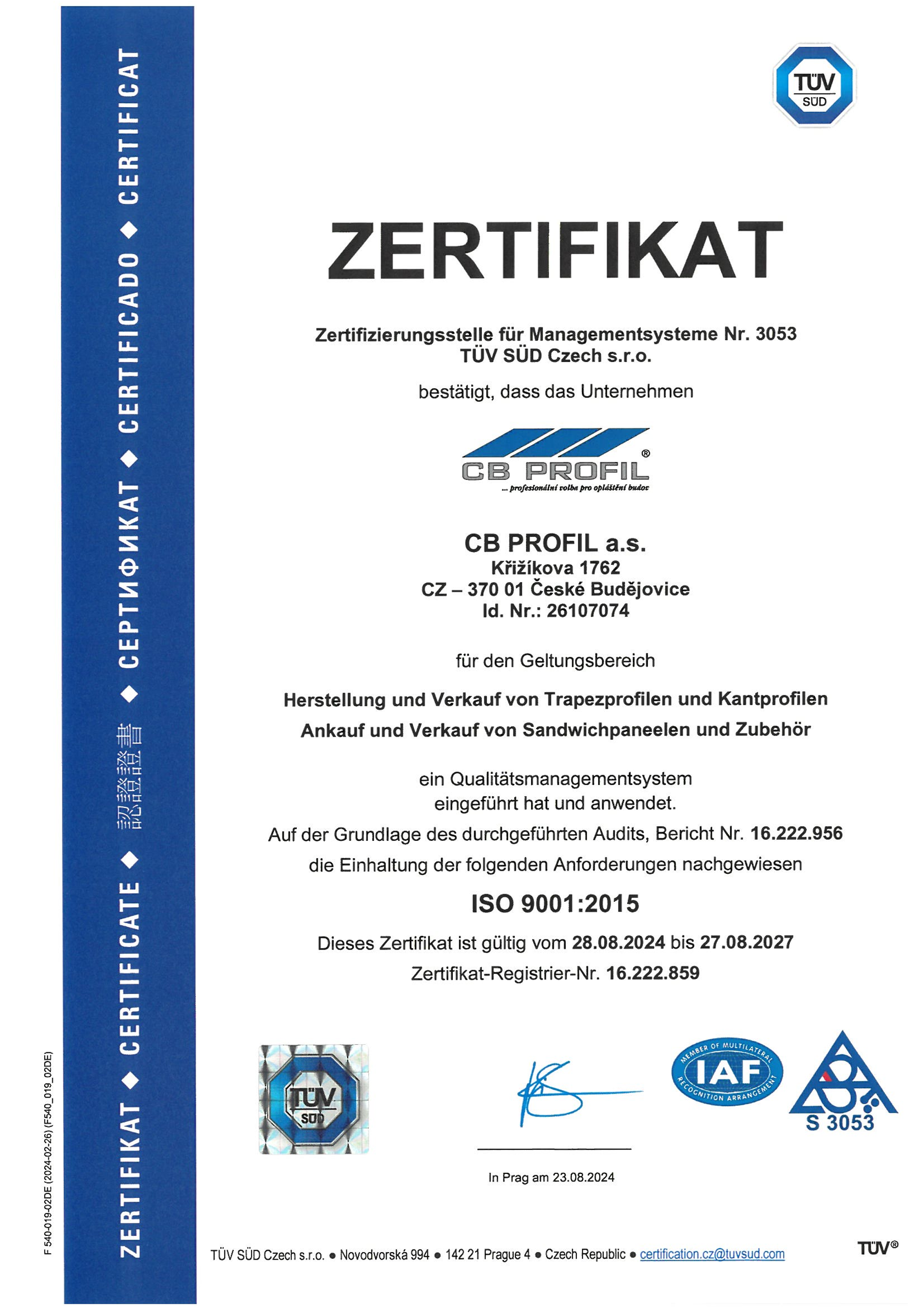 Qualitätsmanagementsystem ČSN EN ISO 9001:2016